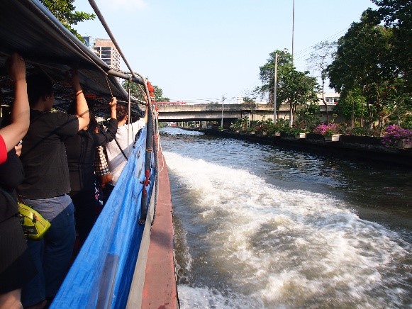 Urban canals in Bangkok, Thailand, directly receive untreated domestic wastewater due to lack of sewer coverage. Pathogenic viruses (hepatitis A virus and rotavirus) were found in canal waters. Saen Saep canal is used for public boat transportation on average 56,000 people per day. The boat screw splashes and aerosolizes the canal water into the air together with viruses, which could survive in the aerosol and be transported for long distance. Therefore there is a possibility for the passengers to be exposed to risk of infection via inhalation of viruses in the air.