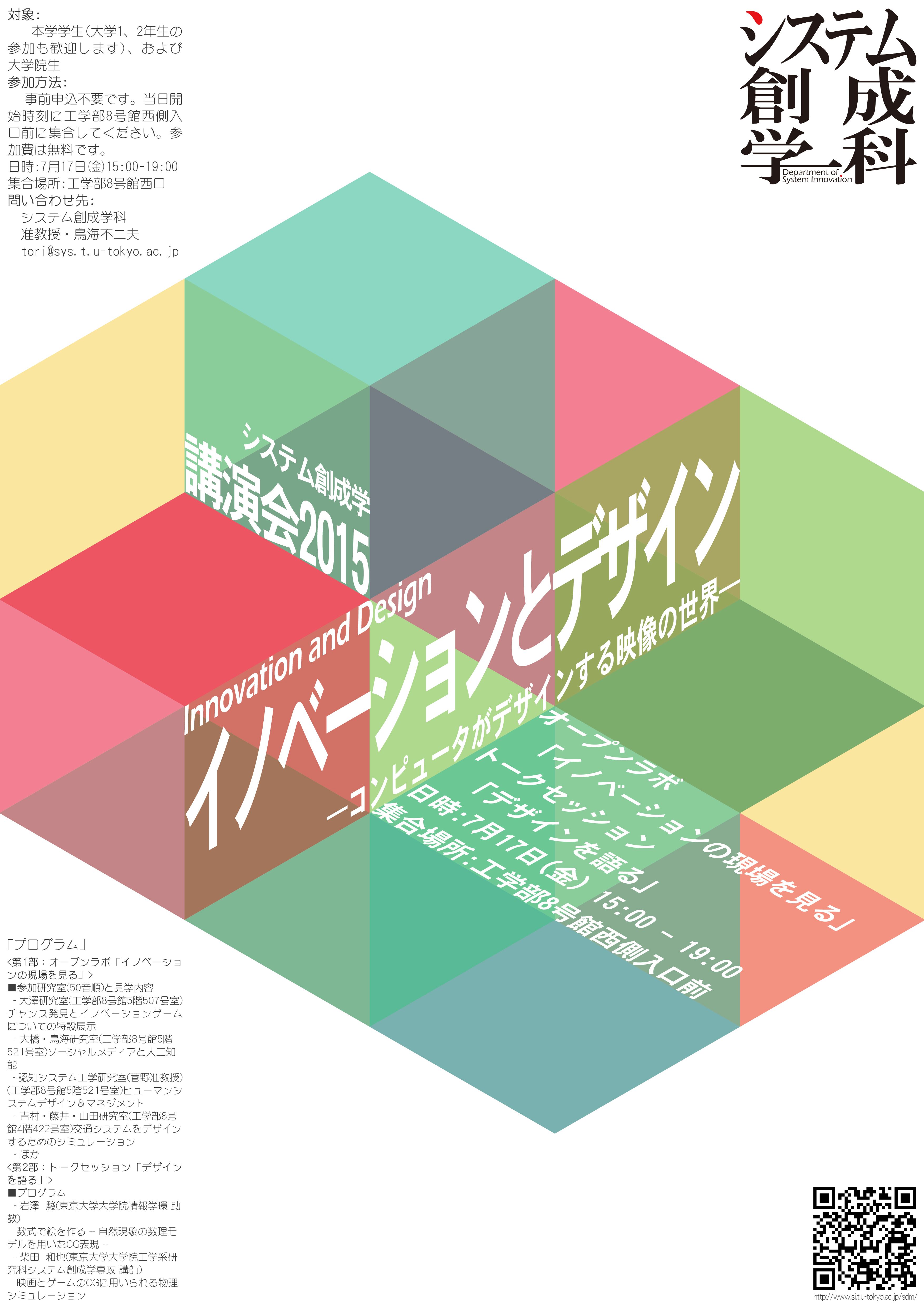 システム創成学講演会2015 イノベーションとデザイン ―コンピュータがデザインする映像の世界― が開催されます.