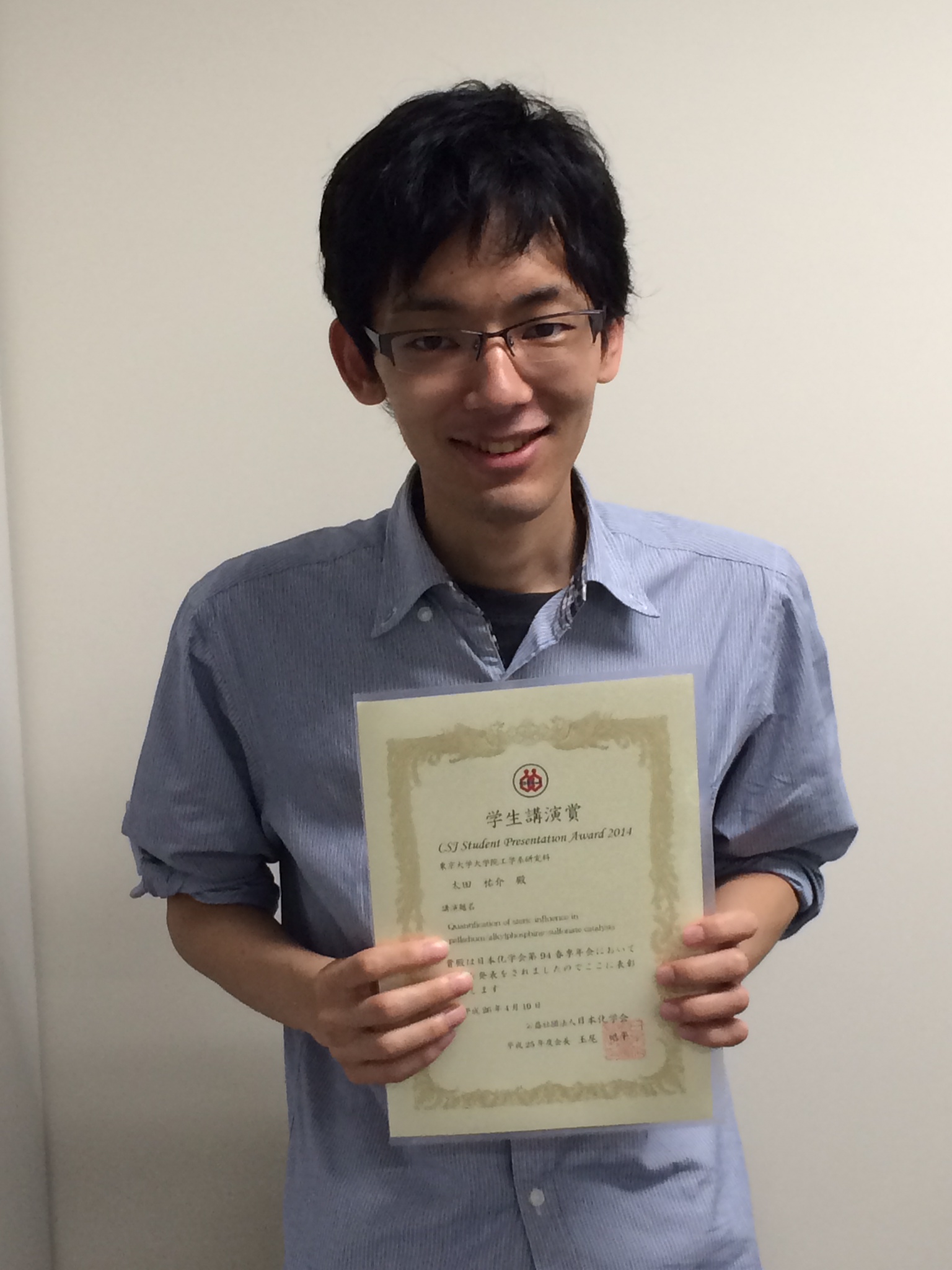 化学生命工学専攻 太田祐介さんが、日本化学会第94春季年会において、学生講演賞を受賞されました。